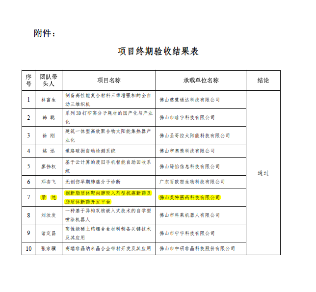 我司 (佛山英特医药科技有限公司)于2014年 12月在佛山市南海区成立,致力于脂质体创新药物研发。佛山国家高新技术产业开发区对我司落户佛山南海表示欢迎,并与我司达成合作,通过股权投资,共同建立吸入型脂质体技术中试工艺服务平台、脂质体新剂型开发和工程化研究中心,推进佛山市南海区乃至我国脂质体药物和原始创新药物的开发。