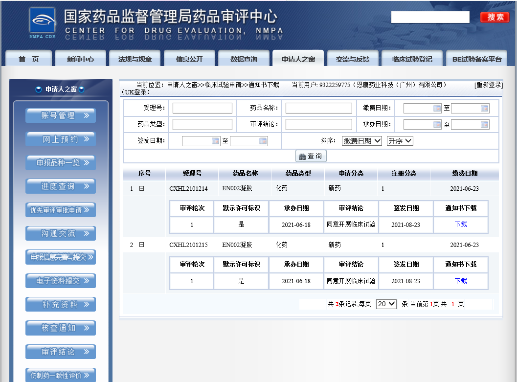 2021年8月23日,恩康药业申报的首个创新靶点DNA复制起始蛋白(DRIPs)抗肿瘤药EN002凝胶,获得国家药品监督管理局药品审评中心颁发的I/II期临床试验批件。该批件同意恩康药业针对治疗非黑色素瘤皮肤癌及癌前病变启动一项评价EN002凝胶的安全性、耐受性及初步有效性的临床试验。